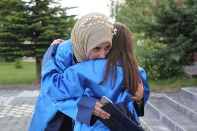 Mezun öğrenciler, günün hatırasını albümlerinde yaşatmak için aileleri, öğretim elemanları ve arkadaşlarıyla anı fotoğrafı çektirdiler.