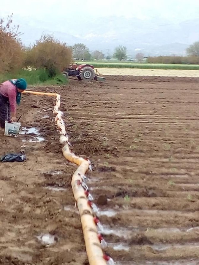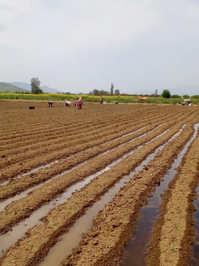 İzmir’in Ödemiş ilçesinde çiftçiler, salçalık domates fidelerini tarlalara dikmeye başladı.