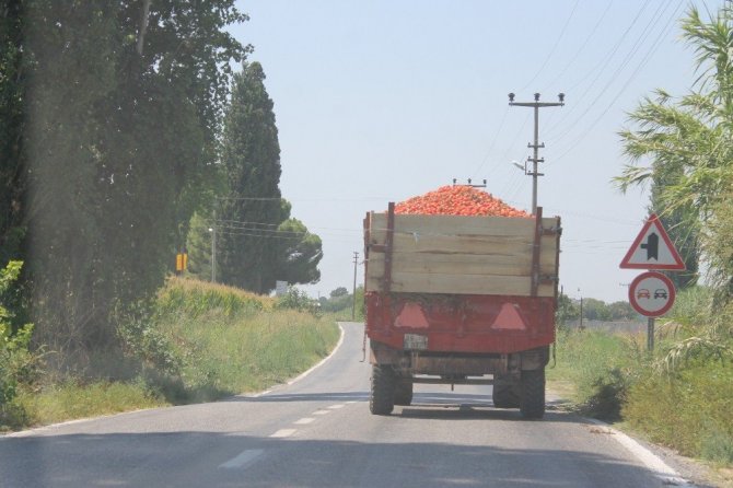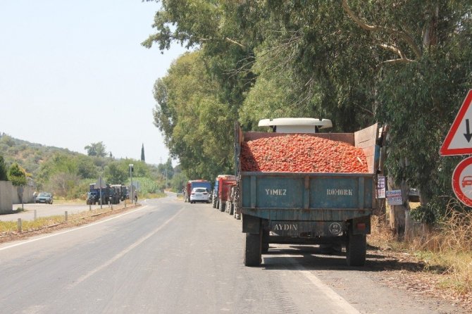 Türkiye’nin domates üretim merkezleri arasında yer alan Aydın’da, domates üreticilerinin hasat hareketliliği devam ediyor. Sabahın erken saatlerinde ürünlerini toplayan üreticiler, Efeler’in Dalama Mahallesi’nde bulunan salça fabrikası önünde uzun kuyruk oluşturdu. Geçen seneye oranla bu sene rekolte ve fiyat ortalamasından memnun olan üreticiler, dekar başına ortalama 5 ton ürün aldıklarını ifade etti.