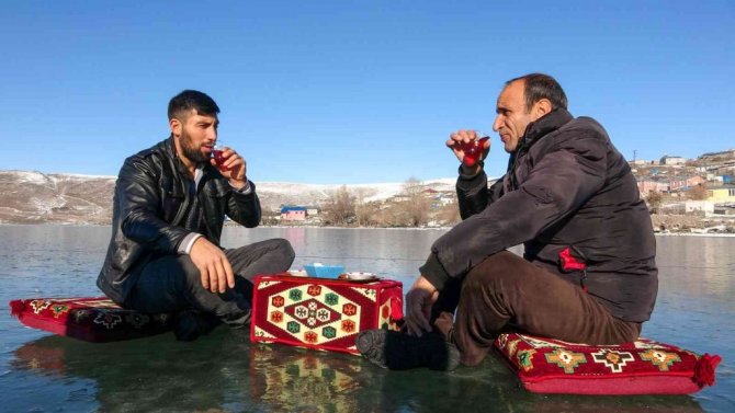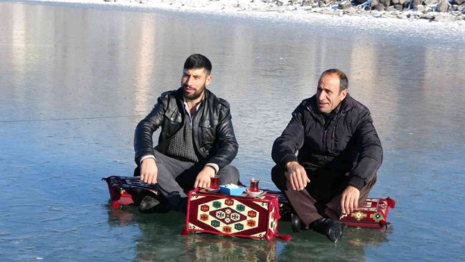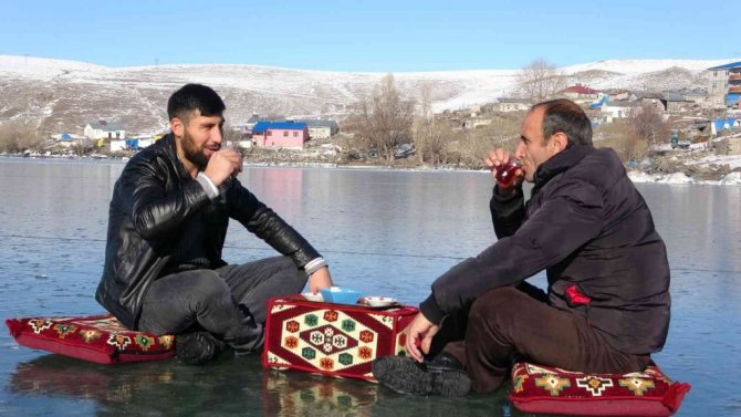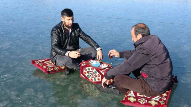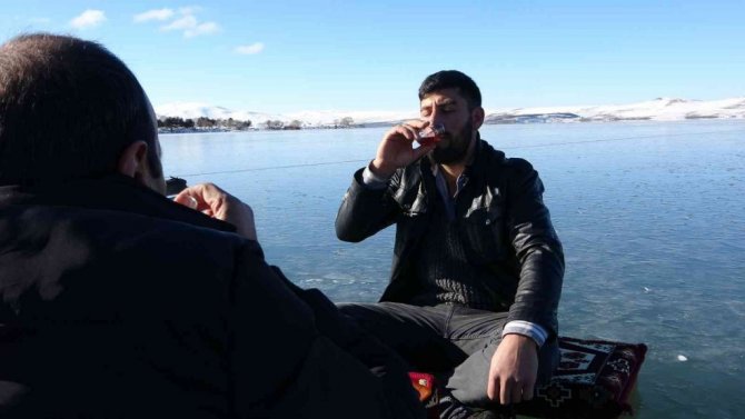 Gölün donmasına sevinen balıkçılar ise göl üzerinde çay keyfi yaptı. Akçakale adasında balıkçılık yapan restoran sahibi Turan Kılıç, "Bugün itibarıyla donan Çıldır gölü buzdan gelinliğini giydi. Donan göl üzerinde çay keyfi yapmak çok güzel. Biz de buraya gelen misafirlerimiz ile birlikte göl üzerinde çay keyfi yaptık. Buradan tüm Türkiye'yi bu eşsiz doğayı görmeye davet ederek, masalsı kış güzelliğinin keyfini çıkartmaya bekliyoruz" dedi.