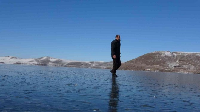 Güzelliği ile ziyaretçilerini adeta büyüleyen gölün yüzeyi donmaya başladı. Üzeri cam gibi olan gölün kaygan zemini ziyaretçilerine hem zorlu hem de keyifli anlar yaşattı. Masmavi gökyüzü, karlı dağlar ve gökyüzünün mavimsi rengini yansıtan buzlu göl tadına doyulmayan manzaralar oluşturdu.