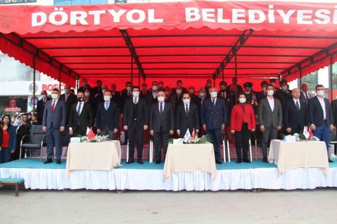 Kutlama törenlerine; Dörtyol Kaymakamı Aydın Ergün, İskenderun Kaymakamı İskender Yönden, AK Parti Hatay Milletvekili Hacı Bayram Türkoğlu, CHP Hatay Milletvekili Suzan Şahin, Dörtyol Belediye Başkanı Fadıl Keskin, Erzin Belediye Başkanı Ökkeş Elmas, Cumhuriyet Başsavcısı Mustafa Deren Özkol, Meslek Yüksekokulu Müdürü Bahittin Gözübenli, Kurum Amirleri, Kuva-yi Milliye ve Mücahit Gazi Dernekleri, öğrenciler ve ilçe halkı katıldı.