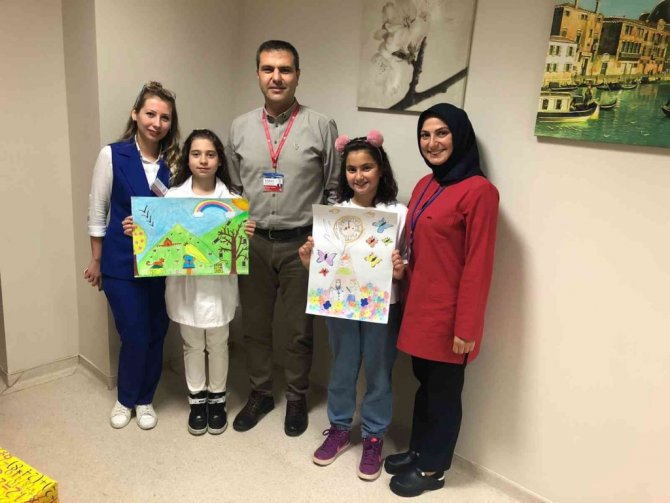 Çalışanların çocuklarının katıldığı "doğa ve sağlık" konulu resim yarışmasında dereceye giren resimler hastanede sergilenecek.