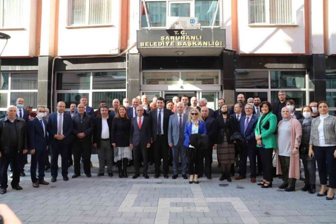 Bilgin, ziyaretin sonunda Genel Başkan Uysal ve Milletvekili Enginyurt'a teşekkür ederek, Saruhanlı'ya özgü hediyeler takdim etti.
