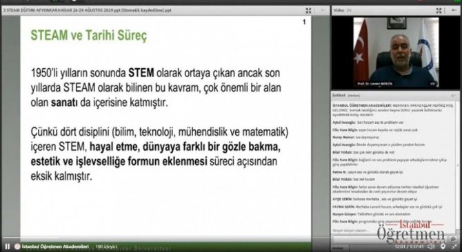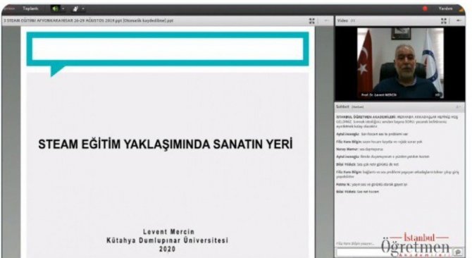İstanbul İl Milli Eğitim Müdürlüğü Öğretmen Yetiştirme ve Geliştirme Birimi bünyesinde çalışmalarını sürdüren İstanbul Öğretmen Akademileri tarafından video konferans yoluyla düzenlenen konferansta konuşmacı olarak yer alan Prof. Dr. Levent Mercin, son yıllarda popüler olan ve sanatla ilişkilendirme çalışmaları süren Steam Eğitiminde Sanatın Rolü’nü öğretmenlere aktardı.