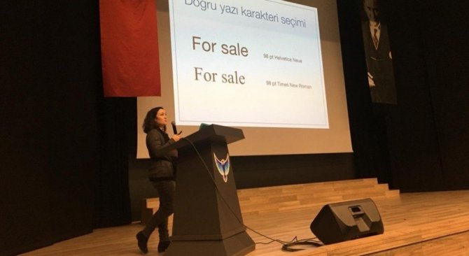 Fakültenin Görsel iletişim Tasarımı bölümünden Dr. Öğr. Üyesi Eren Evin Kılıçkaya Boğ ise Kütahya’da bulunan Özel Kırdar Bilgiören Koleji’nde ve Tavşanlı’daki Ahmet Uluçay Bilim ve Sanat Merkezi’nde ’Sunum Tasarımlarında Tipografiyi Doğru ve Etkili Kullanma’ başlıklı sunumu ile öğrenci, öğretmen ve velilerle bir araya geldi.