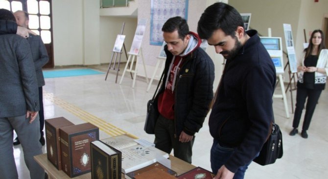 Fakültenin fuaye alanında Vahit Paşa Yazma Eser Kütüphanesinin öğrencilere tanıtılması ve yeni eserler hakkında bilgi verilmesi amacıyla açılan sergide, kütüphanenin basımını yaptığı eserlerden oluşan kitaplar ve Arapça el yazması kitaplardan örnekler yer aldı.