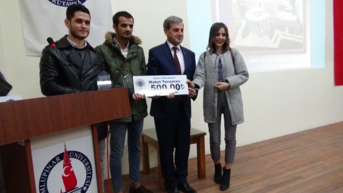 Yapılan değerlendirme sonucu Esma Nur Akça ve Esra Kolay isimli kuzen öğrencilerin ’Osmanbey Mektebi’ adlı maketi birincilik ödülüne layık görüldü. Birincilik ödülünü DPÜ Rektörü Prof Dr. Remzi Gören’in elinden alan öğrencilerden Esma Nur Akça, “Bizim Osmanbey Mektebi’ni seçmemizin sebebi, Belediye Başkanımız Süleyman Özkan’ın ilk okuduğu okul olması ve birçok kişinin anılarının canlanmasını istediğimiz için yaptık. Arkadaşım Esra Kolay ile birlikte üç haftalık bir sürede bu maketi tamamladık. Birincilik ödülü aldığımız için çok mutluyuz. Okul idaremize, öğretmenlerimize ve Simav Belediyesine teşekkür ediyoruz” dedi.