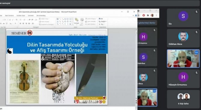 Fakültenin "Güzel Sanatlar Konuşuyor" adlı etkinlik serisinin on beşincisi olan ve çevrim içi ortamda düzenlenen seminerde konuşmacı olarak yer alan Öğr. Gör. Mehmet Pehlivan, öğrencinin, ihtiyaçları olan yeni düşünceleri bulmak, geliştirmek ve çözümlemek için gerekli araçları ve teknikleri hazırlamanın yanında, tasarım sürecinde eleştirel düşünme, problem çözme, proje geliştirme, uygulama alanlarında da gelişme sağlamak için tasarımdaki dil faktörünün önemini örnek afiş tasarımları üzerinden anlattı.
