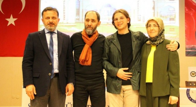 Ahmet Sula da Rektör Prof. Dr. Remzi Gören ve eşi Hatice Gören’in isimlerinin yer aldığı ve kaligrafi tekniğiyle hazırladığı eseri hediye etti.