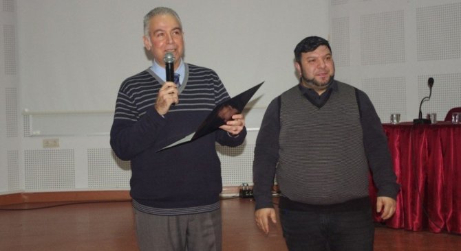 Söyleşide Dekan Vekili Prof. Dr. Levent Mercin, Yasin Pehlivangil’e teşekkür belgesi sundu.