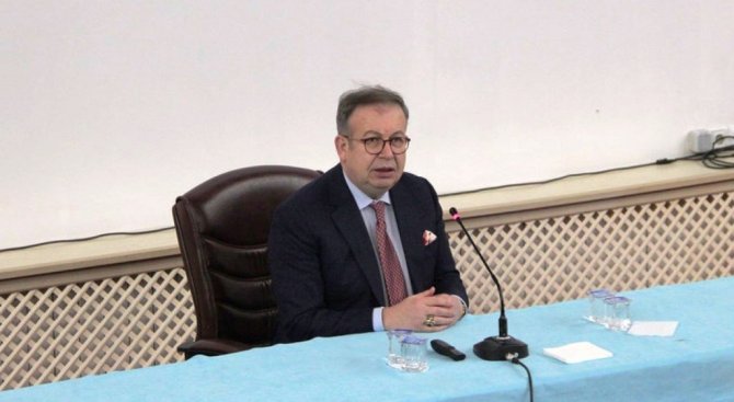 Etkinlikte bir konuşma yapan Rektör Kazım Uysal, "Cihat Yaycı hocamıza teşekkür ediyorum. Üniversitemize değer kattı, bilmediklerimizi bize anlattı. Buradan şu sonucu çıkardım. Dünya ticaretinin yüzde 90'dan daha fazlası denizden gerçekleşiyor. Bizim ecdadımız denizcidir. Bizim dinimiz bunu emrediyor. Dinimiz aslında denizi ve deniz kaynaklarını kullanmamızı emrediyor. Ben bu farkındalığı bizde oluşturduğu için Cihat Yaycı hocamıza teşekkür ediyorum. Kendisine sağlık ve uzun ömürler diliyorum. Vatanımıza ve milletimize faydalı olması için dua ediyorum" dedi.