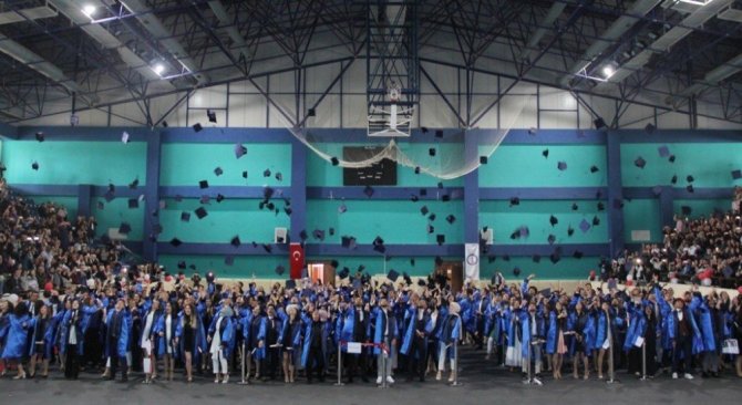 Törenin son bölümünde öğrenciler marşlar eşliğinde keplerini atarak mezuniyetlerini kutladılar.
