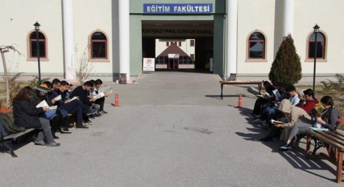Eğitim Fakültesi önünde düzenlenen etkinliğe 80 dolayında öğrenci katıldı. Fakülte önünde bir araya gelen öğrenciler, yanlarında getirdikleri kitapları okudular ve etkinliğe katılan diğer öğrencilerle kitap üzerine sohbet ettiler.