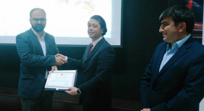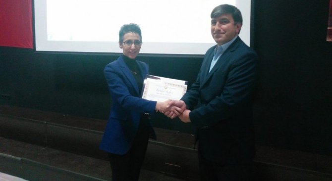 Konferans sonunda Meslek Yüksekokulu Müdür Yardımcısı Öğretim Görevlisi İlker Vural ve Finans, Bankacılık ve Sigortacılık Bölüm Başkanı Dr. Öğretim Görevlisi Filiz Yüksel tarafından Bülent Doğan ve Sadettin Şentürk’e teşekkür belgesi takdim edildi.