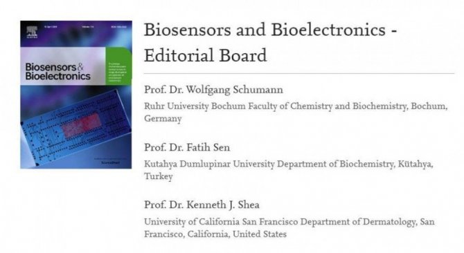 Dumlupınar Üniversitesinin Fen Edebiyat Fakültesi Biyokimya Bölümü öğretim üyelerinden Doç. Dr. Fatih Şen’in, Elsevier grubuna ait ve 9.518 etki faktörü (impact factor) değeri ile dünyanın en iyi sensör ve elektronik dergilerinden Biosensors and Bioelectronics dergisinin Editör Kurulu üyeliğine seçilmesi bu başarının son halkası oldu.