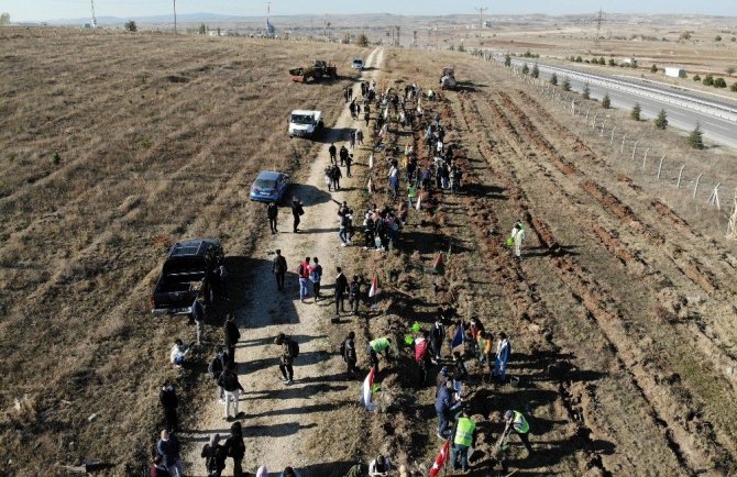 Fidan dikim töreni, havadan da görüntülendi.