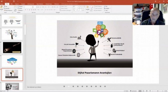 Kütahya Dumlupınar Üniversitesi İşletme Fakültesi Uluslararası Ticaret ve Finans Bölüm Başkanı Prof. Dr. Ercan Taşkın'ın sunumuyla düzenlenen eğitimde, dijitalleşmenin önemi, son yıllardaki dijital dönüşümün sosyal ve ticari hayata etkisi, işletmelerin dijital ortamlara uyumu, bu uyumun sağlanması için öneriler, dijital pazarlamanın avantajları ve önemi gibi konularda bilgiler verilerek katılımcıların soruları cevaplandı.