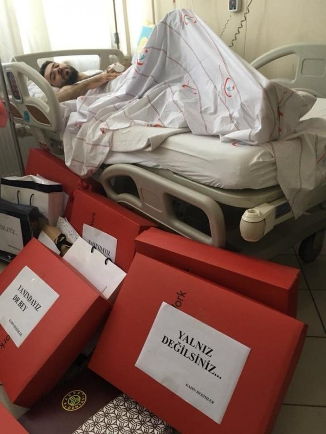 Dr. Kardeş, sosyal medya paylaşımında “Biz bugün Dr. Yunus Emre Baba’nın yanındaydık. Türkiye’nin hatta dünyanın her yerinden kadın doktor arkadaşları olarak onun elini tutup acısını azaltmaya çalıştık. Acil ameliyat sonrası yoğun bakımda gözünü açıp ilk sözü "Anne baba çok üzgünüm, ben neden doktor oldum ki?" diyen Yunus Emre kardeşimiz; ‘Sen doktor oldun çünkü insanların acısının dindirilmesine, iyiliğe, güzelliğe, ‘yaşam’a ihtiyacı var. Doktor oldun çünkü senden şifa bekleyen binlerce minik kalp; ameliyatla hayata tutunacak binlerce ana-baba, ağrısı dindirilecek binlerce dede, nine, yarası sarılacak binlerce vatan evlâdı asker, polis; uzanabileceğin, sana ihtiyacı olan, yurdumun her yerinin binlerce güzel insanı var. Bu onurlu mesleğinde hastanla aranda geçen son acı olay bu olsun kardeşimi; bil ki yalnız değilsin, iyi ki hekimiz, iyi ki bir aradayız" diye mesaj verdi.