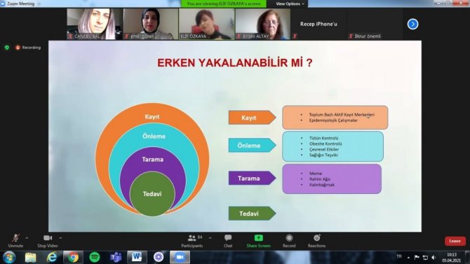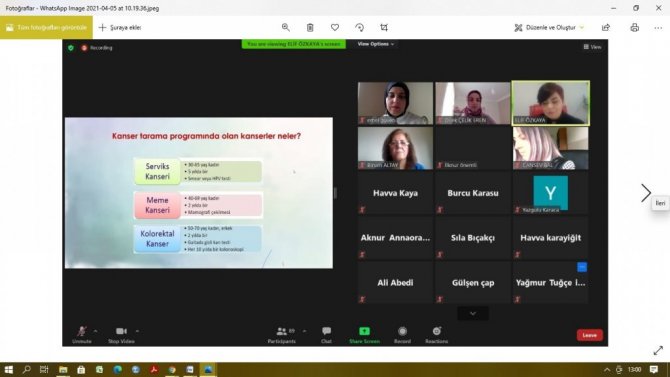 Ondokuz Mayıs Üniversitesi (OMÜ) Sağlık Bilimleri Fakültesi Hemşirelik Bölümü, 1 - 7 Nisan Ulusal Kanser Haftası'nda "Kanser Erken Tanı ve Tarama Faaliyetleri" adını taşıyan online (çevrim içi) eğitimle farkındalık çalışmasına imza attı. "Halk Sağlığı Hemşireliği İntörn Uygulaması" dersi kapsamındaki eğitim; dersin sorumlu öğretim üyeleri Prof. Dr. İlknur Aydın Avci, Doç. Dr. Birsen Altay, Dr. Öğr. Üyesi Figen Çavuşoğlu ve Arş. Gör. Emel Güven tarafından organize edildi. Açılış konuşmalarıyla başlayan etkinlikte söz alan Doç. Dr. Birsen Altay, öğrencilerin toplumsal konulara duyarlı olmalarını hedeflediklerini ve kanser haftasında da farkındalık düzeyini yükseltmeye yönelik çalışmalar yaptıklarını belirtti. Eğitimi veren Samsun İl Sağlık Müdürlüğü Kanser Kayıt Birimi sorumlusu Dr. Elif Özkaya, sunumunda; eğitimde kanserin tanımı, kanserin nasıl önlenebileceği, kanser taraması, tarama programında olan kanserler, kanser taramalarında yer alan birimler ile yapılan faaliyetlerden bahsetti.