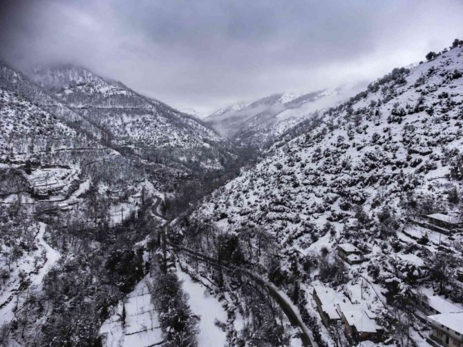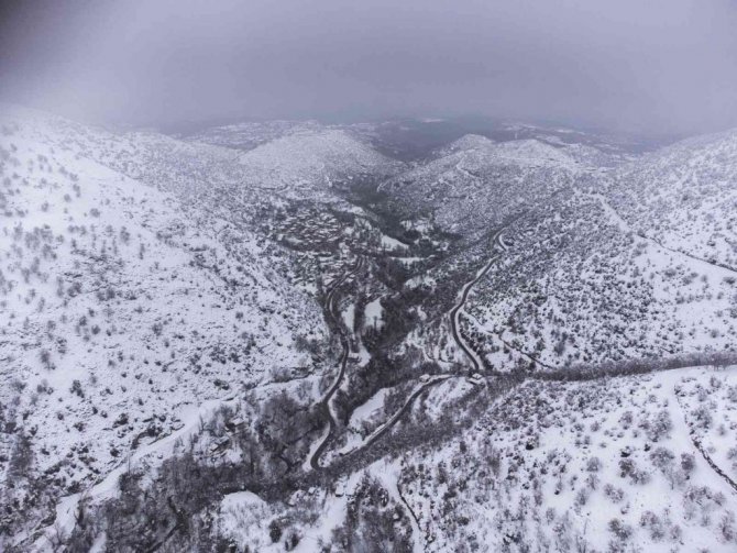 Denizli'de etkili olan kar yağışının ardından Babadağ Dağı ve Babadağ ilçesinde kartpostallık görüntüler oluştu. O anlar 120 metreden drone ile görüntülendi.