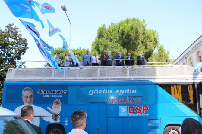 DSP Genel Başkanı Önder Aksakal ve beraberindeki heyet, Samsun DSP İl Başkanlığı binası açılışı için bugün Samsun'a geldi. DSP Genel Başkanı Aksakal, Samsun DSP İl Başkanlığı önünde otobüsün üstüne çıkarak vatandaşlara seslendi. Aksakal, içeriden ve dışarıdan Türk milletinin kötülüğünü isteyen ve ülkenin parçalanması için küresel güçlerle beraber hareket eden kötü niyetli bir kesim olduğunu ifade etti.