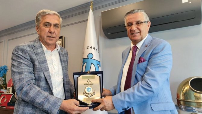 Deniz Ticaret Odası (DTO) Antalya Şube Başkanı Ahmet Çetin, Kemer Belediye Başkanı Necati Topaloğlu'nu ağırladı.