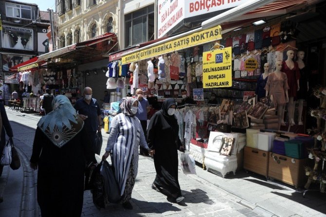 Koronavirüs tedbirleri kapsamında Türkiye’de düğün salonlarının faaliyetlerine ara verilmişti. Faaliyetlerini durduran düğün salonlarının normalleşme sürecine girilmesiyle 1 Temmuz itibariyle açılmasına karar verildi. Düğün salonlarının açılması, evliliğe giden yolda yapılacak alışverişler için İstanbul’un gözde alışveriş noktası Mahmutpaşa’da hareketlilik oluşturdu. Nişan, çeyiz, düğün alışverişi yapmak isteyenler Eminönü’ndeki Mahmutpaşa Çarşısı’nın yolunu tuttu. Koronavirüs salgının yoğun olduğu dönemde dükkanlarını kapalı tutan esnafın ise düğün sezonu öncesi yaşanan hareketlilikten memnun olduğu gözlendi.