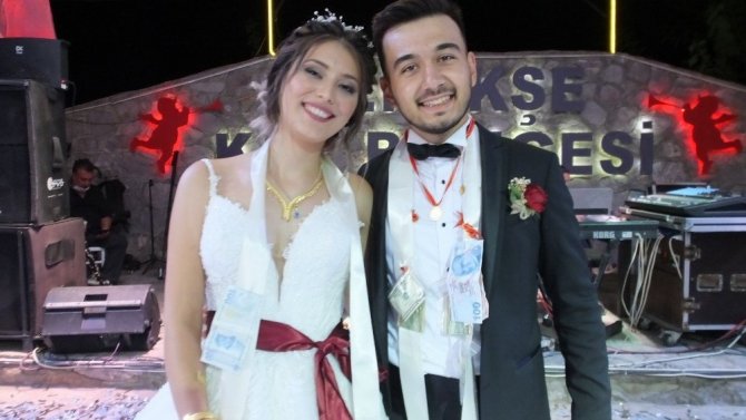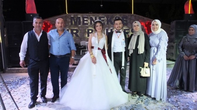 Uygulamalı Bilimler Yüksekokulu teknisyenlerinden Halit Önder’in oğlu gemi teknikeri Ömer Önder ile Burhaniyeli esnaflardan Sezai Issı’nın güzel kızı Hande Issı’nın düğünü renkli görüntülere sahne oldu. Gelin ve damat için düzenlenen takı töreninin ardından sahneye çıkan arkadaşları, 21 yaşına basan gelin için bir sürpriz yaptı. Ellerindeki harflerle “İyi ki doğdun Hande. Seni çok seviyoruz” yazan gençler, bir pasta ile gelini sevindirdi. Duygulu anlar yaşayan gelen arkadaşlarına teşekkür etti.