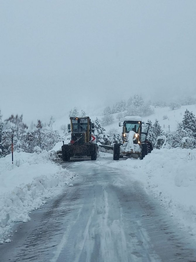 İlçenin yüksek kesimlerine yoğun şekilde yağan kar yağışı sonrasında çalışmalara başlayan Dulkadiroğlu Belediyesi Fen İşleri Müdürlüğü ekipleri, kapanan yolları trafiğe açıyor.