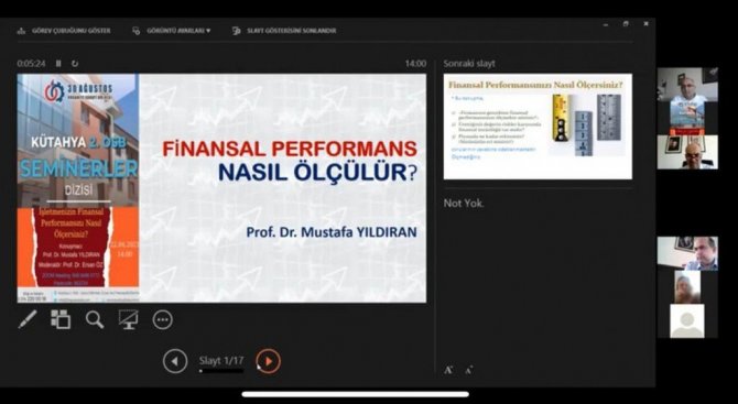 Kütahya Tasarım Teknokent Yönetici A.Ş. tarafından Dumlupınar Teknokent ile 30 Ağustos Organize Sanayi Bölgesi iş birliğinde "İşletmelerde Finansal Performans Nasıl Ölçülür" adlı çevrim içi seminer düzenlendi.