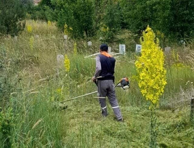 Kütahya'nın Dumlupınar ilçesinde, bayram öncesi ilçe mezarlığında bakım ve temizlik çalışmaları yapıldığı bildirildi.