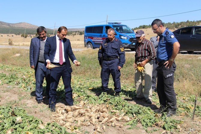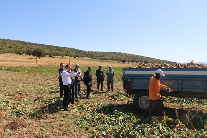 Söküm döneminin başlamasından dolayı Dumlupınar Kaymakamı Abdulkerem Abbasoğlu, Belediye Başkanı Şemsettin Akağaç, şeker pancarı üreticilerini tarlada ziyaret ederek, çiftçilerle sohbet edip pancar sökümü hakkında bilgi aldı.