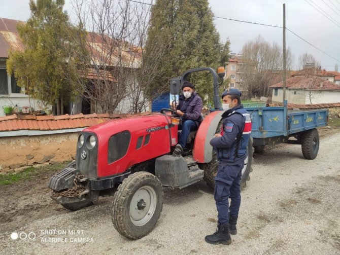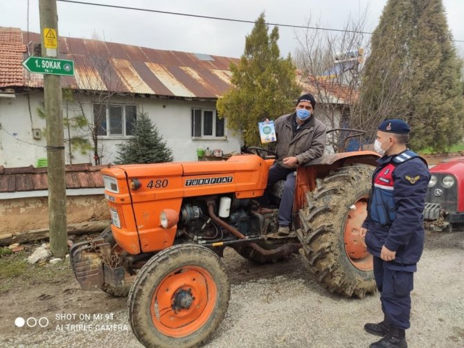 Kütahya'nın Dumlupınar ilçesinde merkez ve köylerdeki traktör sürücüleri jandarma tarafından güvenli kullanım konusunda bilgilendirildi ve broşür dağıtımı yapıldı.