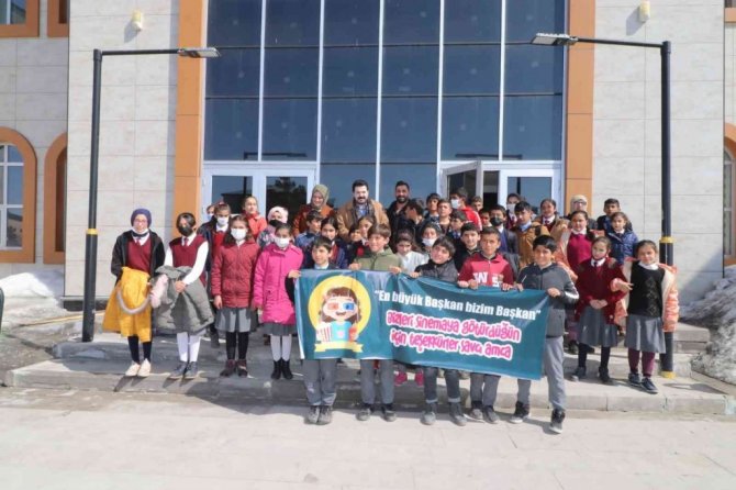 Öğrencilerle birlikte film izleyen Belediye Başkanı Savcı Sayan, film sonrası öğrencilere çeşitli hediyeler verirken, Sayan'ın sürprizi ile mutlu olan öğrenciler, Sayan'a teşekkür etti.