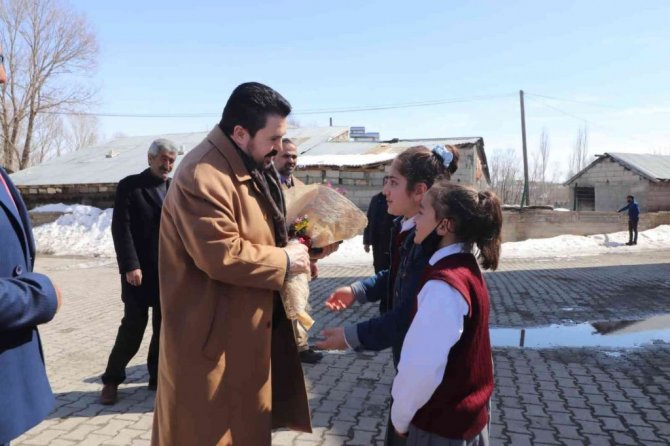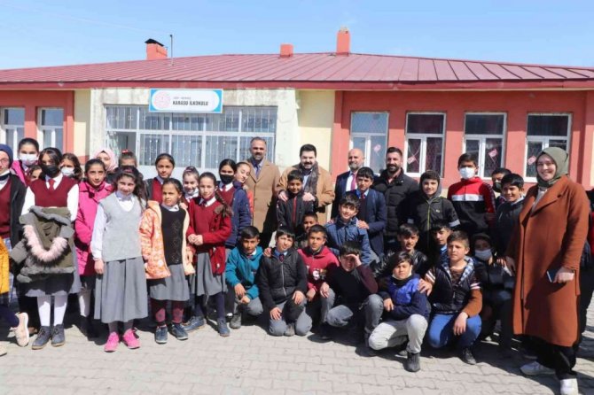 "04.04.Dünya Ağrılılar Günü" nedeniyle çeşitli etkinlikler düzenleyen Ağrı Belediye Başkanı Savcı Sayan, Ağrı merkeze yaklaşık 15 kilometre uzaklıkta bulunan Karasu Köyü İlkokulu öğrencileri ile bir araya geldi.
