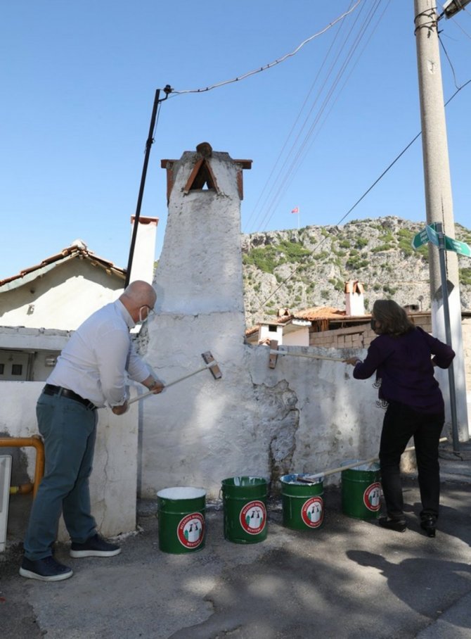 Menteşe Belediye Başkanı Bahattin Gümüş, Kentsel Sit Alanı Bölgesinde bulunan Şeyh, Kiramettin, Karşıyaka, Orta, Hacırüstem, Karamehmet, Camikebir, Balıbey ve Müştakbey mahallelerinde mahalle muhtarları ile birlikte kireç dağıttı ve mahalle sakinleri ile birlikte badana yaptı.