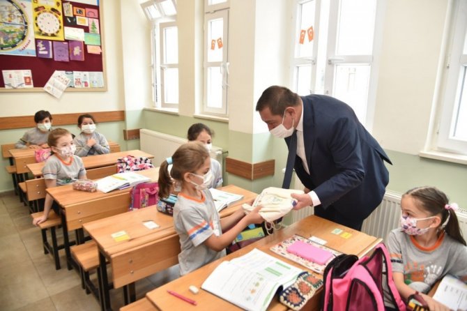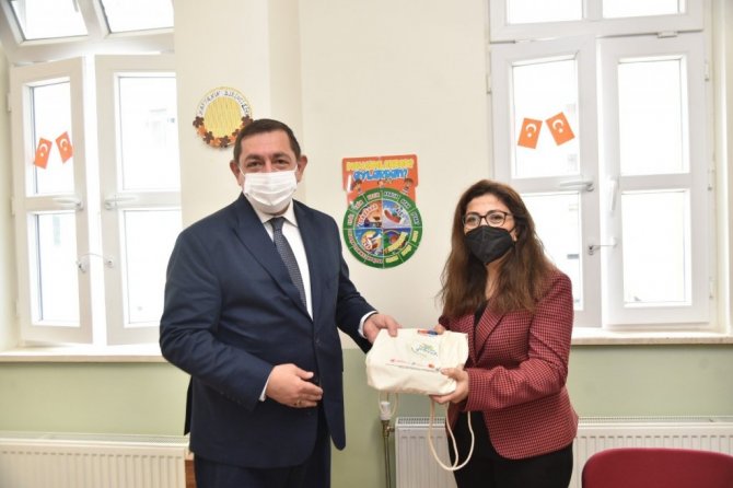 Başkan Vidinlioğlu, açıklamasının ardından çocuklar için özel hazırlanan Dünya Çevre günü temalı bez sırt çantası, çam tohumlu kurşun kalem, silgi, kalem açacağı, defter, boyama kitabı, boya kalemi ve kalemlikten oluşan hediye setlerini sınıfları tek tek gezerek dağıttı.