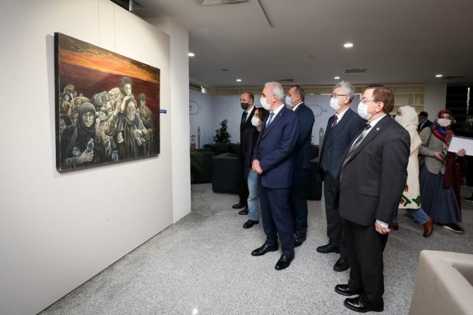 Ümraniye Belediyesi tarafından 18 Aralık Dünya Göçmenler Günü'nde, göç konusunun farklı boyutlarıyla ele alındığı "Göç" konulu resim sergisi açıldı.