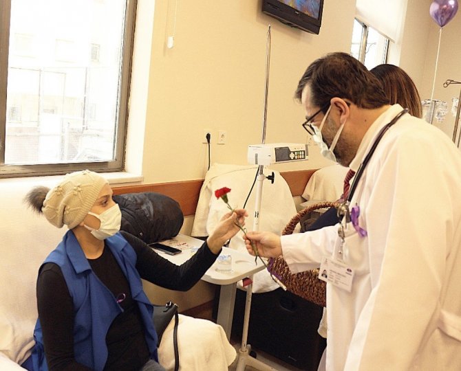 4 Şubat Dünya Kanser Günü etkinlikleri kapsamında hastane yönetimi, personeli ile hasta ve hasta yakınlarına günün anlamını sembolize eden kurdeleler dağıtılarak, Kemoterapi Ünitesi balonlarla süslendi.