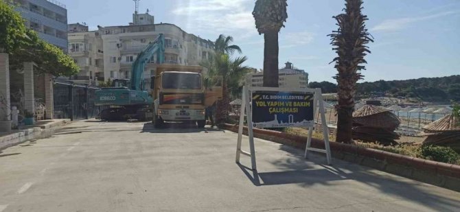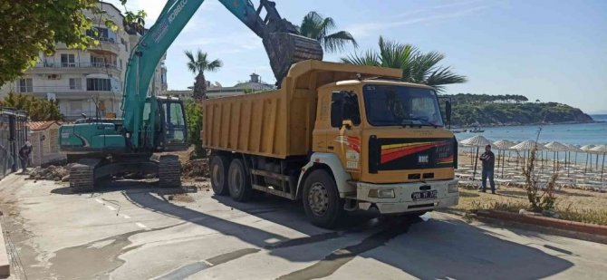 Didim Belediyesi kentin çeşitli bölgelerinde yol yapım ve yenileme çalışmalarını sürdürüyor. Ekipler, dünyaca ünlü Altınkum Plajı'nda bin 200 metre uzunluğunda begonit taşı döşeme işlemi gerçekleştiriyor.