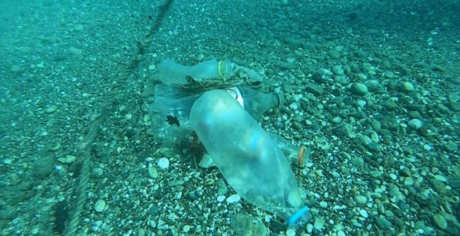Dünyanın en güzel sahillerinden biri olan Konyaaltı'nda 15 metre derinliğe kadar indiklerini ifade eden Mehmet Gökoğlu, "Ancak kirlilik çok fazla. Sigara izmaritinden tutun her türlü plastik atık var. Küçük ambalajlar, pet şişeler, ıslak mendil, pet bardak, maske, karadaki çöplerden aklınıza ne gelirse su altında görebiliyoruz" dedi.
