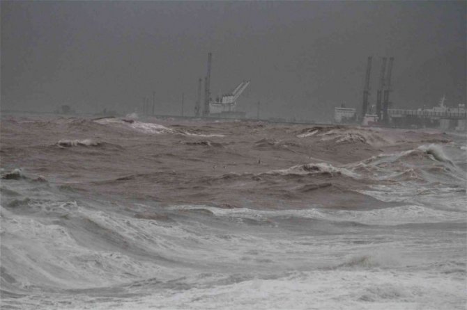 Meteoroloji tarafından 3 ilçesinde "kırmızı" kodlu uyarı verilen Antalya'da etkili olan şiddetli yağmur sonrasında dünyaca ünlü Konyaaltı Sahili'nde denizin rengi kahverengiye döndü. O anları unutulmaz kılmak isteyen vatandaşlar ise şiddetli rüzgar karşısında dev dalgaları görüntüledi.