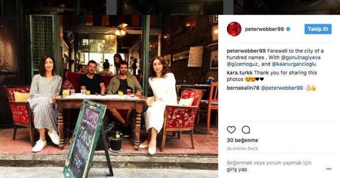 Hannibal Doğuyor, 10 milyar, İmparator gibi birçok filmin yönetmenliğini yapan ve 3 dalda Oscar, 2 dalda da Altın Palmiye’ye aday gösterilen İnci Küpeli kız filmi ile dünyaca tanınan İngiliz yönetmen Peter Webber sürpriz bir İstanbul ziyareti gerçekleştirdi. Weber, İstanbul’da Türk oyuncular Gönül Nagiyeva, Kaan Urgancıoğlu ve menajer Gizem Oğuz ile görüştü. İstanbul’da bir kafede ünlü Türk oyuncularla çektirdiği fotoğrafı instagram hesabından paylaşan Peter Webber’in çok sayıda takipçisi ‘Yeni bir film projesi mi?’ şeklinde yorumlar yazdı. Oyuncu Gönül Nagiyeva da instagram hesabından ‘Teşekkürler sevgili yönetmenim’ yazarak Peter Webber’le çektirdiği fotoğrafı paylaştı.
