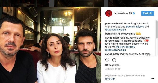 İnci Küpeli Kız filmi ile dünya çapında tanınan İngiliz yönetmen Peter Webber, İstanbul’da Gönül Nagiyeva ve Kaan Urgancıoğlu ile görüştü. Weber’in Türk oyuncularla çektirdiği fotoğrafı sosyal medyada paylaşmasının ardından yapılan yorumlar dikkat çekti.