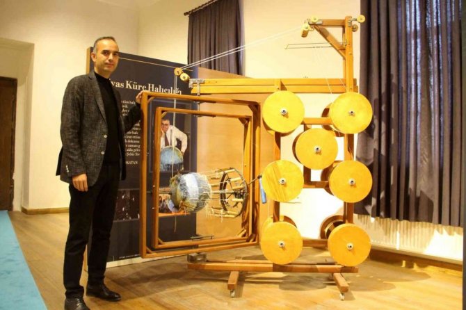 Fatih Mehmet Tanrıveren, küre halının özelliklerinden bahsederek, "Sivas Küre Halıcılığı, şöyle bir özelliği var dünyada tek ve tescili de yapan kişiye aittir. Botanikçi olan Sivaslı bir profesör tarafından bir tezgah icat edilmiştir. Şöyle düşünmüş açıkçası "Halı yerde, duvarda ama Sivas halılarına nasıl ses getirebilirim, hangi boyuta taşıyabilirim" gibi düşünmüş ve küre halıyı yapmış. Küre halı da bildiğimiz kürenin fiziki özelliklerine göre aynı resmi halıya işliyor. Bu yüzden dünyada tek ve patenti kendisine ait. Sağ olsun hocamız da bu müzeye hediye etti. Diğer 2 tezgah Sivas Kongre Müzesinde 3'üncü tezgahı da buradadır. İlk tezgah prototip ilk kendisinin geliştirmiş olduğu ama tamamen halının dokunmuş olduğu son tezgah budur" dedi.