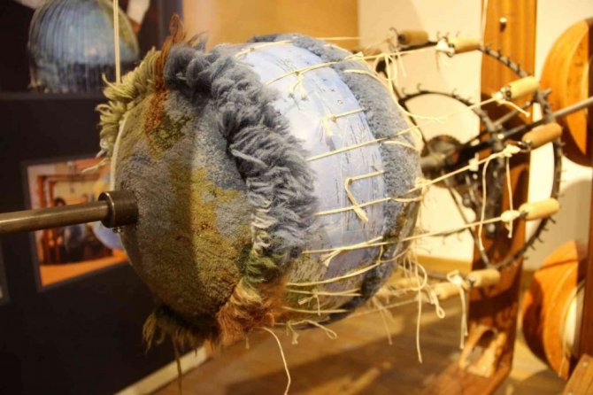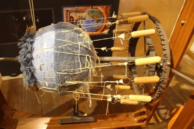 Sivas'ta yaşayan Botanikçi Profesör Yener Okatan'ın 2000'li yıllarda bulduğu ve patentini aldığı dünyanın ilk Küre Halı dokuma tezgahı, Sanayi Mektebi...