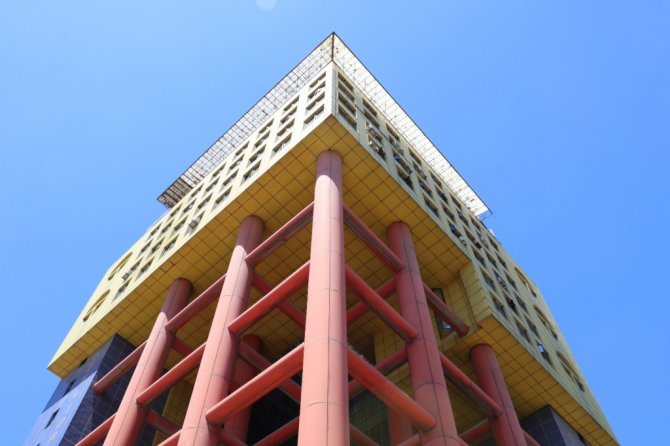 Arama motoru Google'da "dünyanın en saçma binası" olarak gösterilen sarı, mavi ve kırmızı renkli binaya ilk kazma Kurban Bayramı'nda vurulacak.