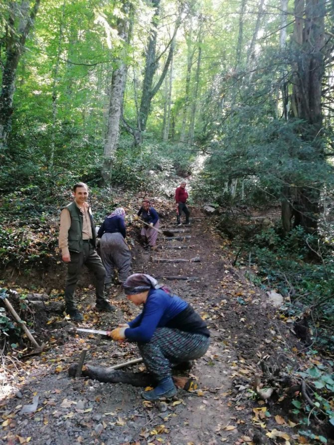 "Biyolojik çeşitlilik açısından doğal arboretum sahamız vardır. Yenice ilçesine 17 kilometre mesafededir. Bin 100 metre rakımdadır. Bu sahamız 4,7 hektarlık alanda ağaç, ağaççık ve çalı türlerinden oluşmaktadır. Otsu çeşitli bitki türleri de bulunmaktadır. Yaklaşık bin 200 mesafesinde gezinti yolu yaptık. Ayrıca seyir terası yapacağız. Biyolojik çeşitlilik bakımından önem arz ediyor. Camiyanı çamı dediğimiz aslında kara çamın yetişme muhiti ırkı, kalın çap yapabiliyor. Bölgenin yetişme muhiti ırkı olarak arazideki ana kayadan almaktadır etkisini. Kavaklı şefliğimizde bin 120 rakımda 90 santimetre çapında 19 metre boyunda fındık ağacımız bulunmaktadır. Ayrıca bin 200 metre rakımında 2 metre 20 santimetre çapında porsuk ağacımız vardır. Tür çeşitliliği bakımından, yaban hayatı zenginliği bakımından önemli yerimizdir. Arboretum sahası ise şu. Çeşitli yetişme muhiti istekleri bakımından farklılık arz eden ağaç türlerinin bir arada yetiştiği sahamız. Bu sahamızda genelde ağaç türlerimizin yanında çeşitli otsu türlerimiz de var. Yürüyüş parkuru yapıyoruz. Doğal malzemeden doğaya uygun olacak şekilde bin 200 metre yürüyüş parkuru oluşturduk. Çalışmalar devam ediyor. Özellikle yöredeki kadın işçilerimiz çalışıyor. Bölgemize ekoturizm bakımından gerekse bilimsel ve eğitim bakımından önem arz edecek bir yer. Bütün halkımıza açarak orayı kullandırmaya çalışacağız."