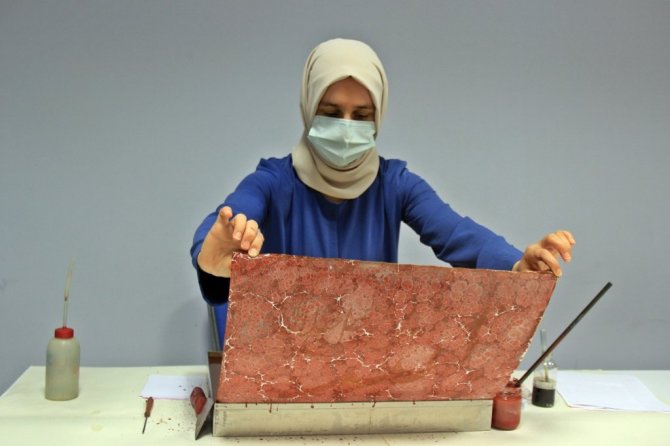 Kocaeli Büyükşehir Belediyesi Gençlik ve Spor Dairesi Başkanlığına bağlı Akademi Lise'de ebru öğretmeni olarak görev yapan Meral Oruç, 10 yıldır ebru sanatı ile ilgilendiğini ve onu öğrencilerine öğrettiğini söyledi.